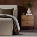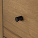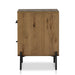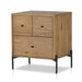 Modern with minimalist industrial details, this stylish nighstand is crafted in thick oak veneer with medium brown stain and solid steel legs with minimalist drawer pulls.