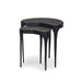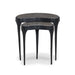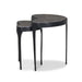 Kidney-shaped nesting end tables pair for an organic-inspired duo, with cast aluminum framing tapered legs to the inset marble top.