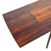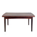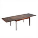 Complete with two expanding leaves, this vintage dining table is crafted in Brazilian rosewood with gently rounded edges and tapering turned legs. Two leaves pull out from under the table's surface to create seating for up to ten people. Made in Denmark.
