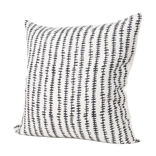 The square Jenna decorative pillow in cream linen has a black lines print on one side. Made of a natural linen that provides a subtle texture.
