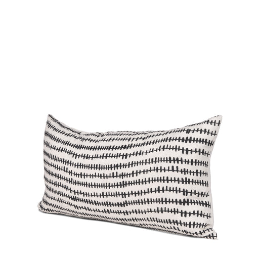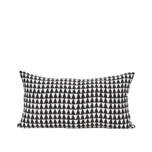 FullhouseThis lumbar Jolie Pillow in cream linen has a black arrowhead print on one side.