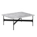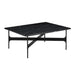 Refining geometric shapes, the Floema Coffee Table is made with tabletops in exclusive marble, walnut or black laminate, elevated by a slender frame of black powder-coated steel.